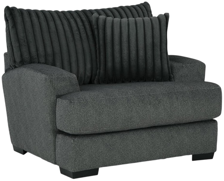 Redefine your living space with the graceful simplicity of the 938 collection. Designed with plush, wide track arms and soft chenille-like fabric, this group blends relaxed comfort with high-end polish. The geometric patterns and ribbed textures on the accent pillows and ottoman add visual interest while maintaining a serene, tonal palette.Read More