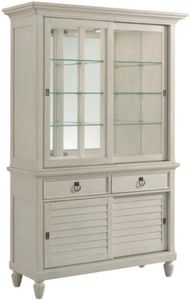 The Grand Bay Haystack egret hutch combines coastal elegance with functional design. Crafted in a warm haystack egret finish, it features adjustable shelves, framed glass doors, and decorative molding, offering ample display and storage space for dining essentials or cherished collectibles.Read More