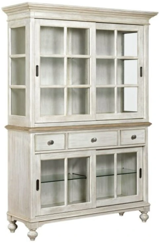 The Litchfield Sullivan buffet hutch exudes coastal charm and timeless elegance. Crafted with a distressed sun-washed finish, it offers ample storage with adjustable shelves and glass doors, blending functionality and style to beautifully showcase dinnerware or décor in any dining space.Read More