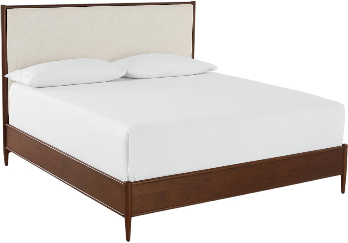 Employing the classic characteristics of Danish mid-century modern design, the Copenhagen Upholstered Bed delivers a more softly styled interpretation featuring an upholstered headboard. The linen-blend fabric of the headboard is framed in the warmth of American walnut, creating an oasis of tranquility that honors your modern, casual style.Read More
