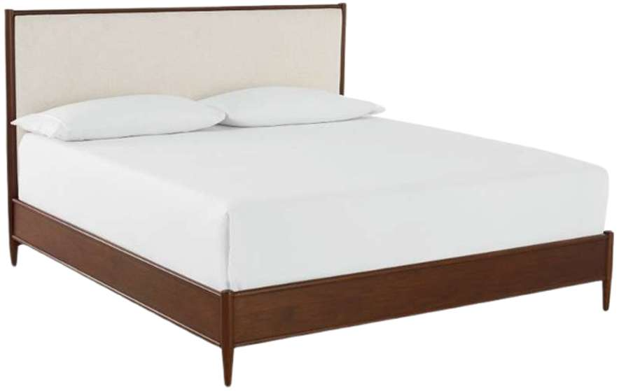 Employing the classic characteristics of danish mid-century modern design, the copenhagen upholstered bed delivers a more softly styled interpretation featuring an upholstered headboard. The linen blend fabric of the headboard is framed in the warmth of american walnut, creating an oasis of tranquility while honoring your modern casual style.Read More
