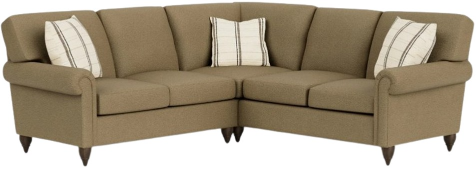 Cozy up with the family or claim it all for yourself with the Moxy sectional that lets you personalize details for the perfect look and feel. Formal panel roll arms sit on round turned legs for a traditional look. This sectional is built with superior frame construction and our patented blue steel spring.Read More