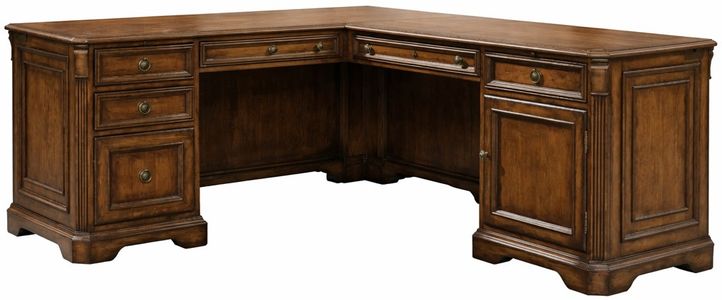 The Brookhaven Collection is crafted from hardwood solids with cherry veneers. It features a distressed medium clear cherry finish. Elevate your workspace with our Left Pedestal Desk and Right Pedestal Return. Traditional style, ample storage, and a character-rich finish.Read More