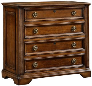 Two file drawers with locks on steel ball-bearing slides and an anti-tilt mechanism. The Brookhaven Collection is crafted from hardwood solids with cherry veneers. It features a distressed medium clear cherry finish.