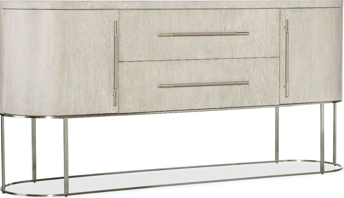Softly sophisticated with a clean modern profile and luxe mixture of materials, the Modern Mood Server is a stunning statement piece. The case has rounded corners, is finished on all sides, and has an oval metal stretcher that goes all the way around.Read More