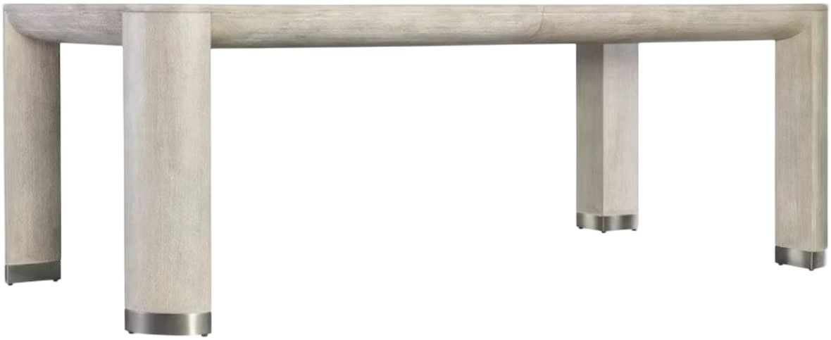 Inspired by decades of design movements with an unmistakably modern aesthetic that transcends time, the modern mood leg dining table is a striking, softly sophisticated profile. Featuring a rounded table apron and corners, matched veneers on the top and metal banding accents on the legs in a warm pewter finish.Read More