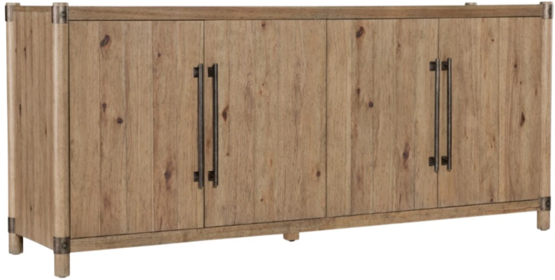 Capture the essence of the napa valley feeling with the vineyard row entertainment credenza. Combining pecky hickory veneers with visible knots and rustic hammered metal accents, it is finished in the light-and-airy Sonoma hue. The credenza features 4 doors with soft-close hinges and magnetic catches.Read More