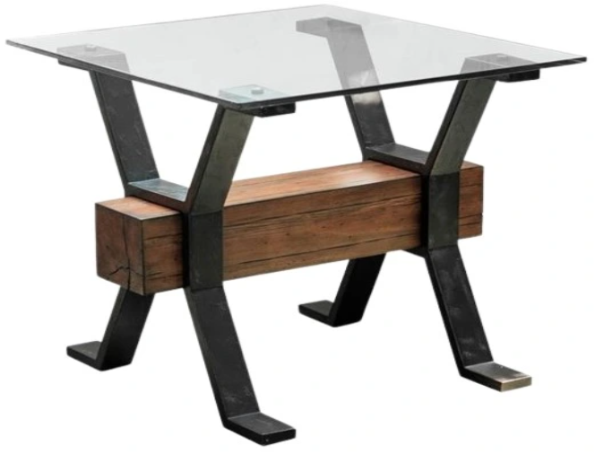 As if designed in a master blacksmith or woodcrafter’s workshop, Sawyer blends reclaimed wood, glass and metal artfully. With a stylized sawhorse theme, Smoked Iron finished metal creates the ‘x’ shaped supports that are joined by thick square wood stretchers that are washed in a toasted nutmeg finish.Read More
