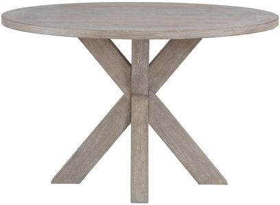 The Frosted gray round dining table combines casual elegance with coastal charm. Crafted from select hardwood solids and oak veneers, it features a planked top with v-grooves and a fixed 48" diameter surface, providing an inviting space that comfortably seats four.Read More