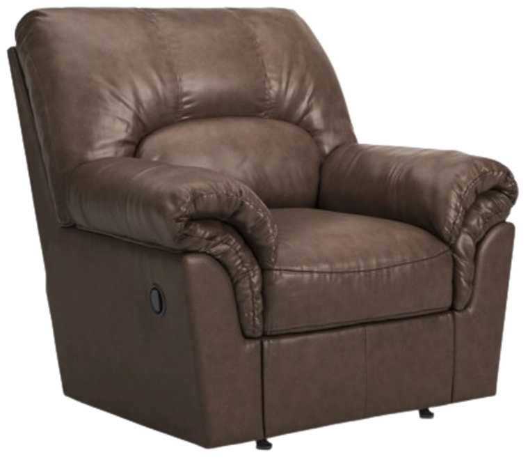 Modern comfort never looked so good. Sporting supremely soft yet durable cushions accented with high-fashion jumbo stitching, this stunning rocker recliner is the ultimate choice in comfortably cool, contemporary style. Its umber-hued faux leather indulges with an upscale feel and wows like the real thing.Read More